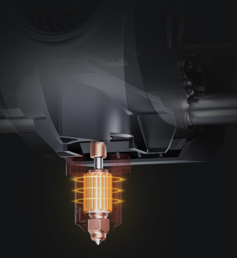 - Může rychle roztavit ABS, PETG a další filamenty s vysokou teplotou.