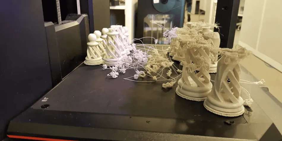 Při 3D tisku jsou některé zřejmé znaky, že váš filament absorboval vlhkost, jako jsou praskající zvuky vycházející z extruderu a bubliny ve filamentu, když se zahřívá. Pokud roztavený termoplast stále vytéká z tiskové hlavy 3D tiskárny, i když je stroj vypnutý, může to být také známka toho, že je filament vlhký. Dalšími znaky mohou být problémy na samotném 3D vytištěném dílu, jako je vláknění, hromadění materiálu a špatné přilnavost mezi vrstvami.