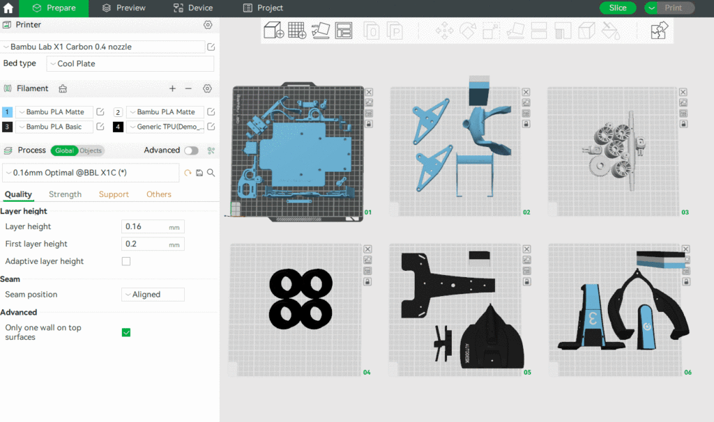 Bambu Studio se vyčleňuje díky svému zaměření na projektově orientovaný přístup, což umožňuje uživatelům snadno spravovat komplexní projekty a zajišťuje, že všechny komponenty projektu jsou pečlivě koordinovány. Tato funkce je zvláště užitečná pro ty, kteří pracují na větších a složitějších projektech, které vyžadují pečlivé plánování a koordinaci mnoha různých částí.
