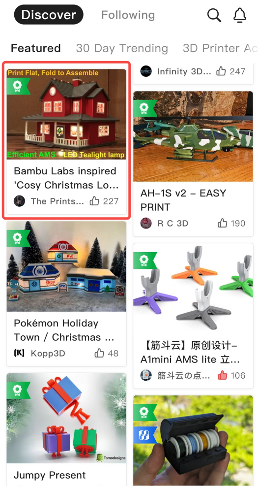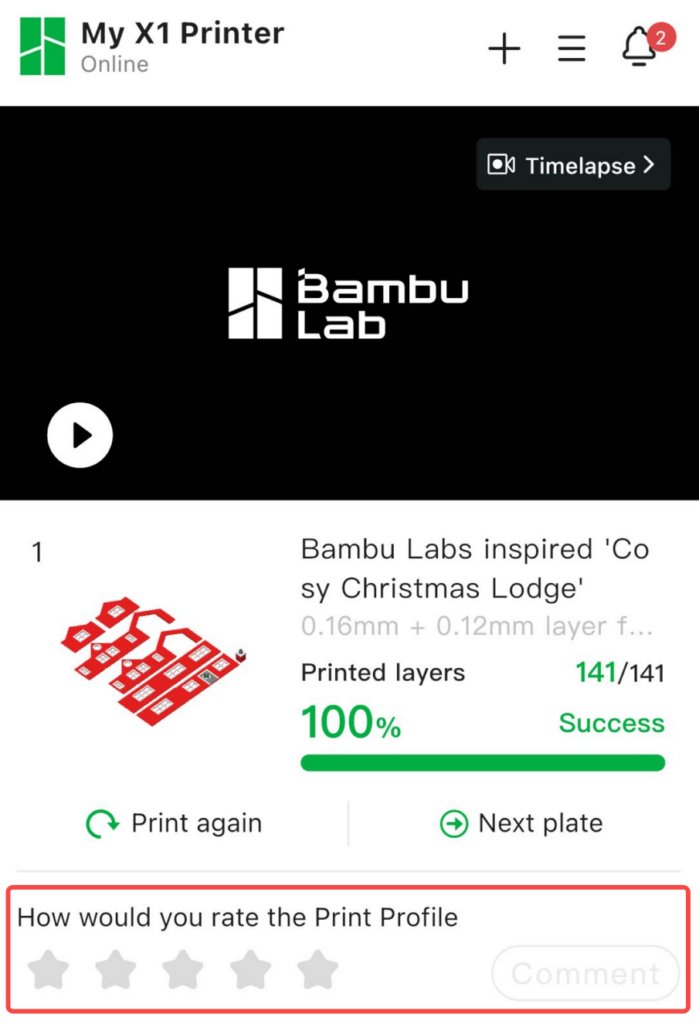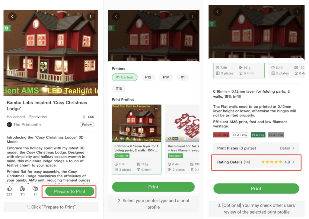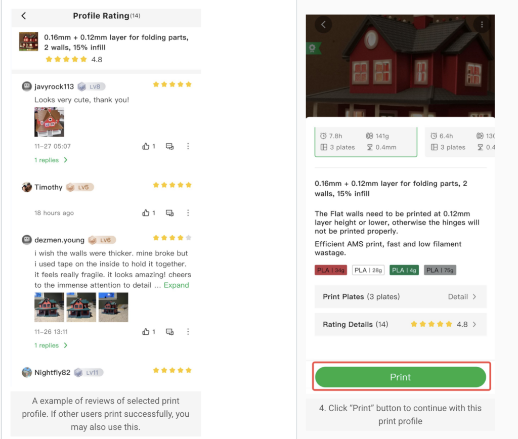 Po vytisknutí a sestavení modelu vás zveme, abyste ohodnotili vytištěný model. Vaše zpětná vazba může pomoci autorovi vylepšit model a poskytnout ostatním uživatelům lepší představu o jeho kvalitě.