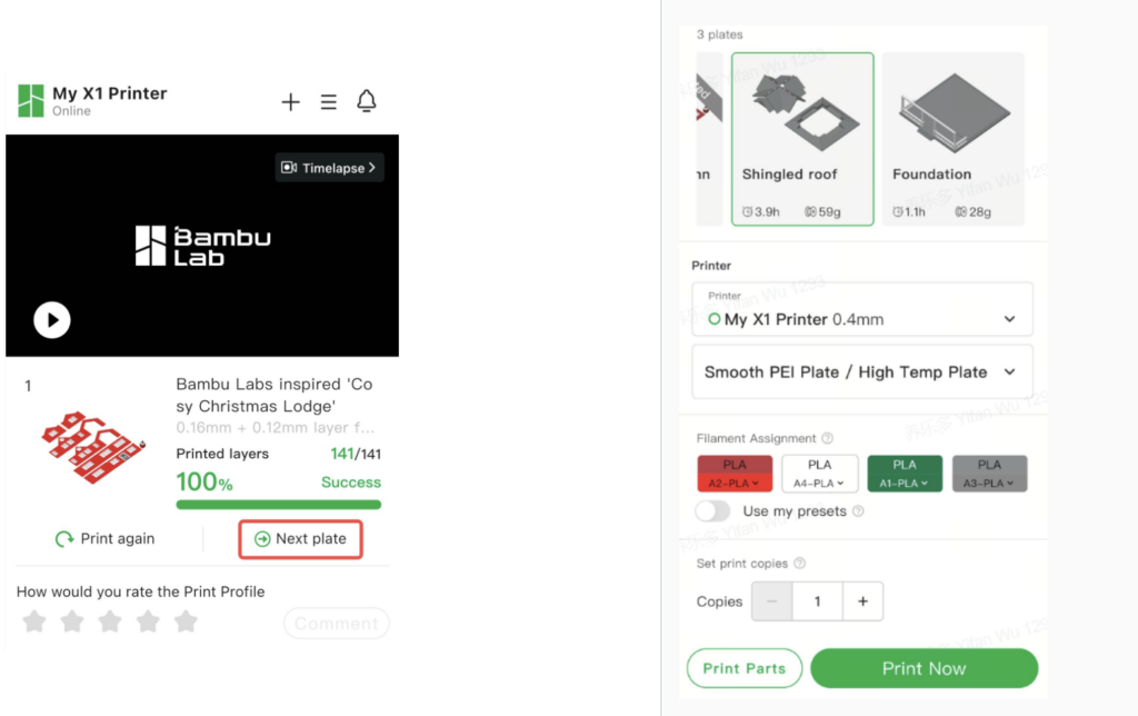 Pokud model obsahuje více než jednu desku, můžete kliknout na tlačítko „Další deska“, abyste pokračovali v tisku další desky.
