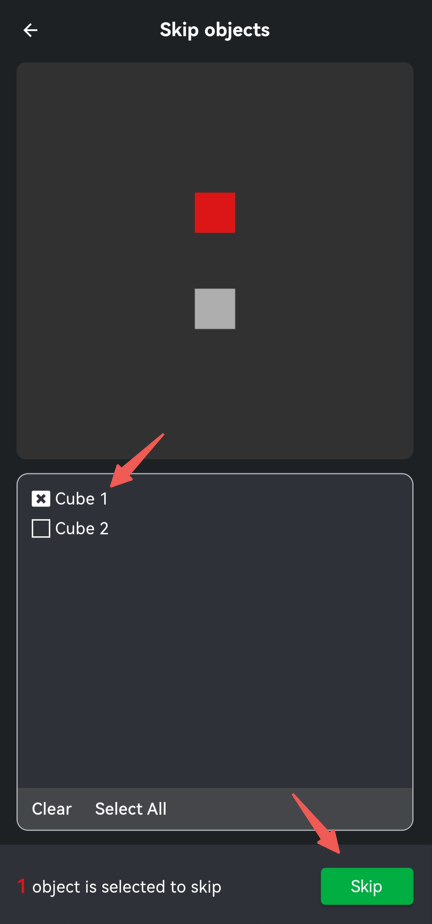 Existují dvě situace, kdy si můžete vybrat konkrétní část k tisku. První je, když je tisková úloha odeslána do tiskárny z Bambu Studio – v tomto případě můžete na obrazovce zařízení zvolit, kterou část chcete tisknout. Druhá situace nastane, pokud je tisk spuštěn z historie tisku nebo přímo z MakerWorld. V obou případech, pokud se na jedné tiskové desce nachází více částí, můžete pomocí funkce Tisk částí/Přeskočení částí vybrat, kterou část chcete tisknout, čímž šetříte čas i materiál. Mějte na paměti, že pokud se rozhodnete přeskočit část během tisku, nelze tuto operaci vrátit zpět. Pokud budete chtít vynechanou část vytisknout, bude nutné tisk spustit znovu. Další informace o funkci tisk částí/přeskočení částí naleznete v části Přeskočení objektů.